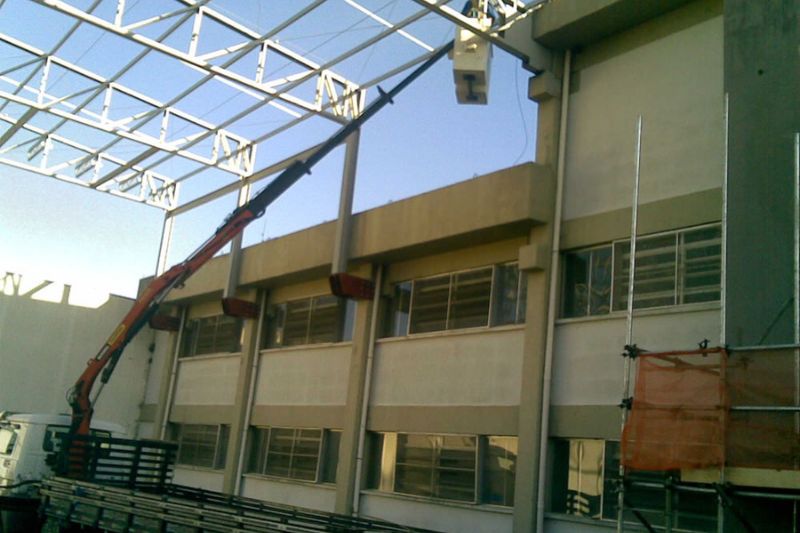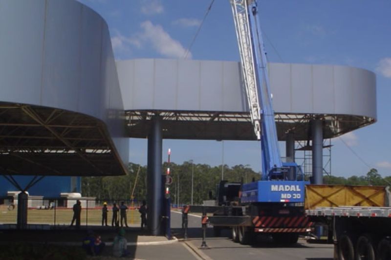 Montagem da estrutura da portaria principal da SOUZA CRUZ em Cachoeirinha - RS.